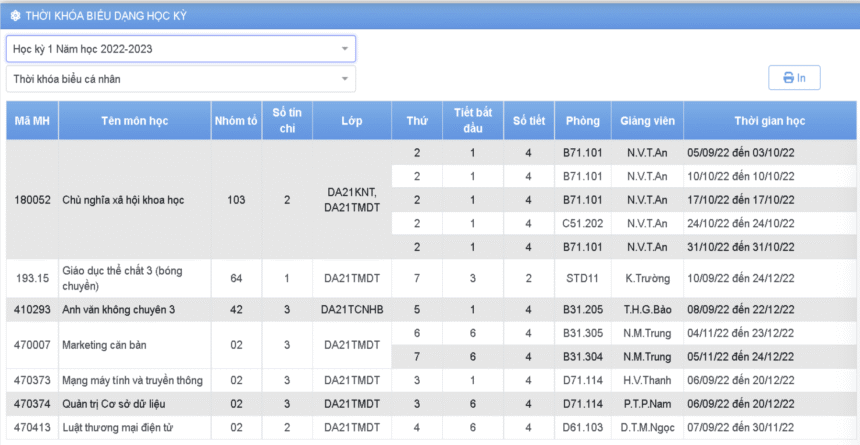- Lịch học và lịch thi: Theo dõi lịch học, lịch thi để chuẩn bị ôn tập và tham gia các kỳ thi đúng giờ.