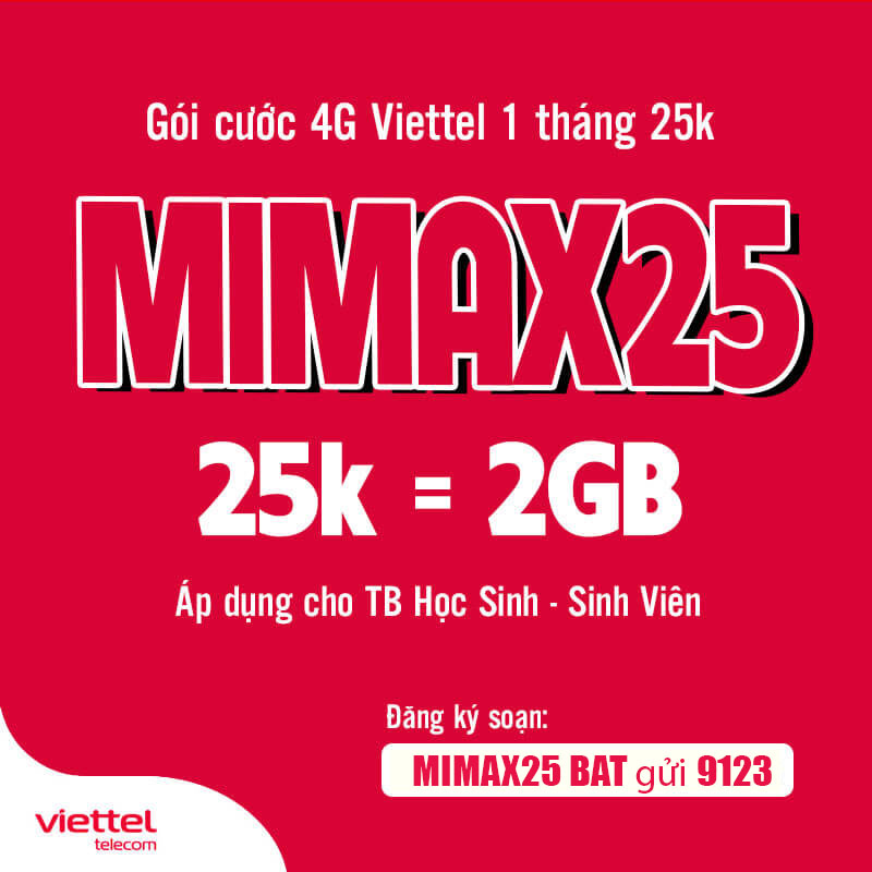Trong thời đại số hiện nay, việc sở hữu một gói cước 4G ổn định và tiết kiệm chi phí là điều vô cùng quan trọng, đặc biệt là đối với các bạn sinh viên. Gói cước Viettel 25K chính là một lựa chọn lý tưởng dành cho sinh viên với mức giá phải chăng, cung cấp internet tốc độ cao, và phù hợp với nhu cầu học tập, giải trí của các bạn trẻ.