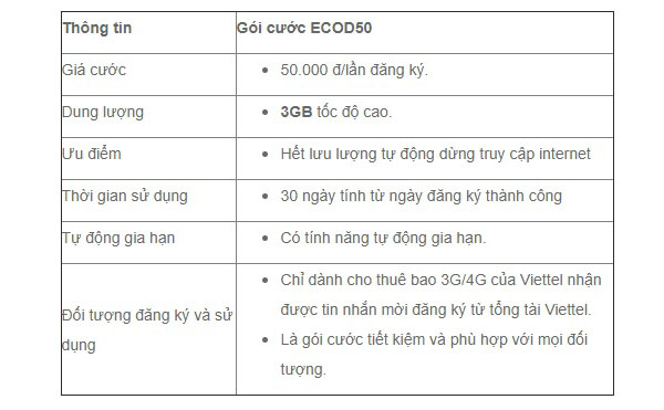 3. Chi Tiết Các Gói Cước Viettel 50K Tháng Cho Sinh Viên